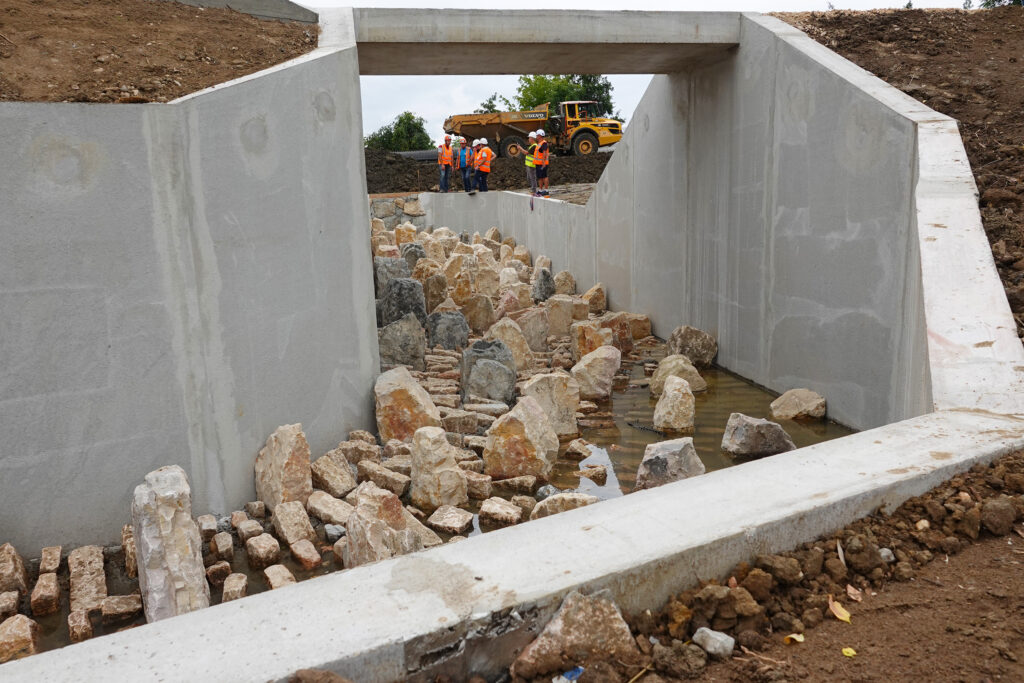 En 2025, la collectivité a engagé une étape majeure pour la restauration écologique de la Reyssouze avec la réalisation des travaux de franchissement du barrage des Aiguilles. Une rivière de contournement a ainsi été créée en rive gauche de la Reyssouze, au niveau des nouvelles vannes automatiques, afin de permettre aux poissons de poursuivre librement leur migration.