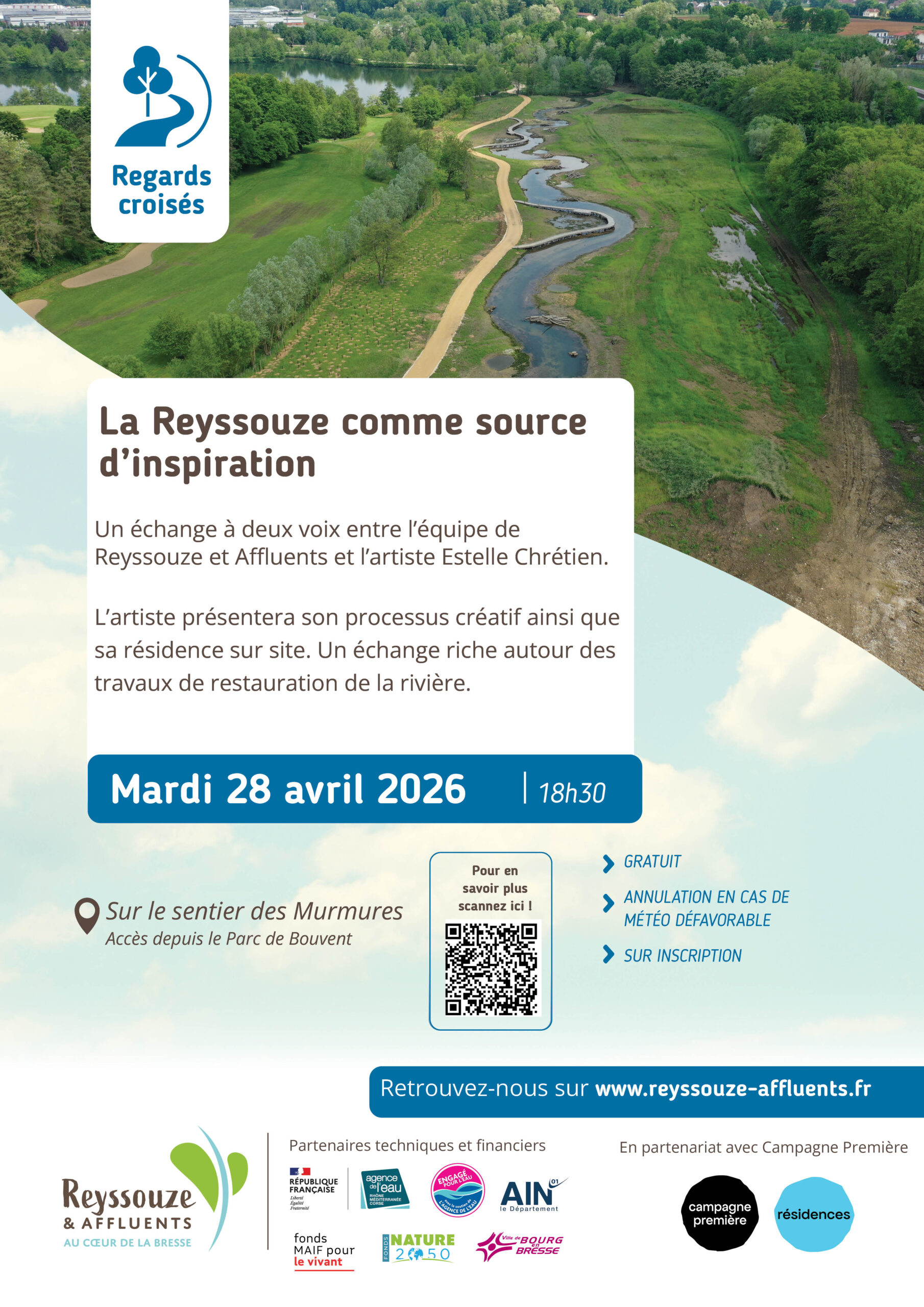 La Reyssouze comme source d’inspiration : un échange à deux voix entre l’équipe de Reyssouze et Affluents et l’artiste Estelle Chrétien.