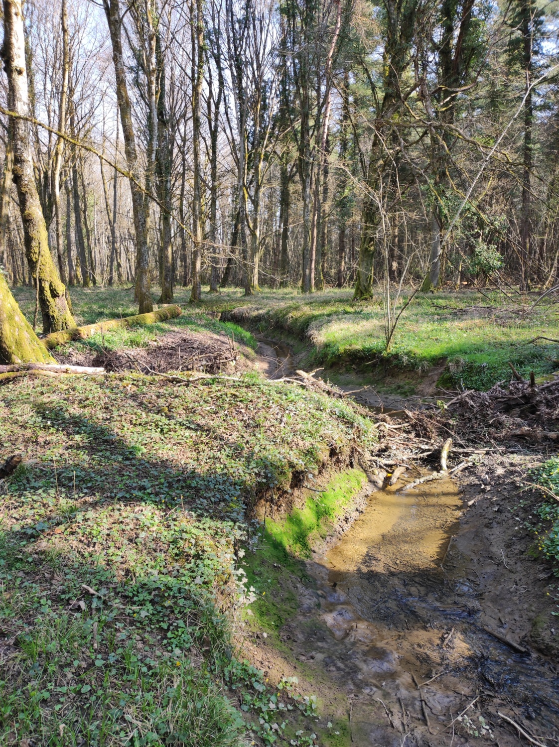 La présence de drains sur la parcelle et la morphologie du cours d’eau favorisent le drainage des eaux, ce qui entraine des conséquences négatives sur l’hydrométrie du sol, puisque la capacité de rétention des eaux par le sol est diminuée. De plus, le temps de résidence de l’eau dans le bief est amoindri, ce qui concentre les écoulements et augmente le débit d’arrivée des eaux pluviales.